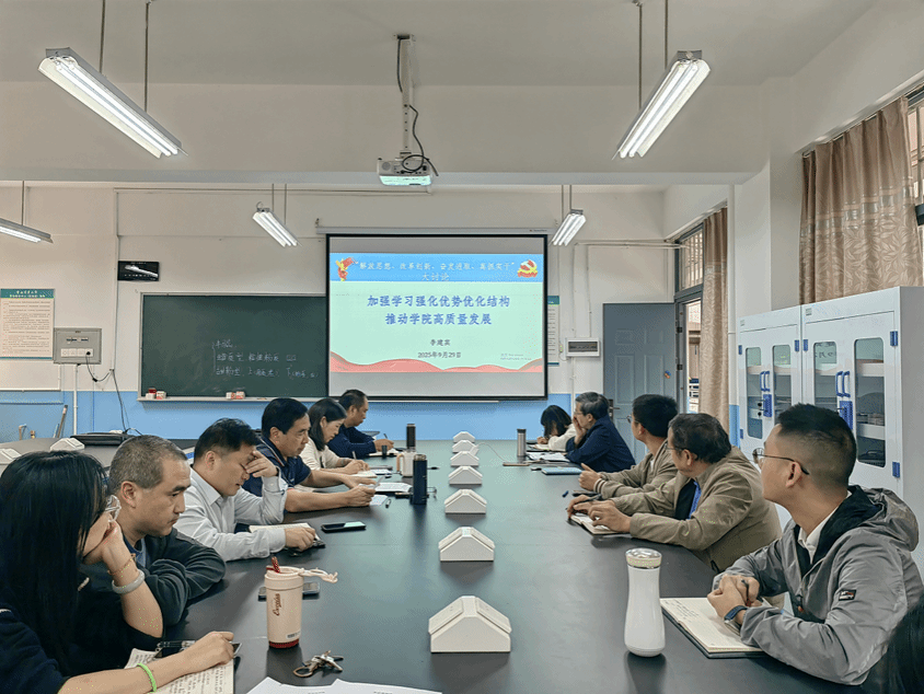 接着,李建宾院长作主题发言。他主要讲了两个方面的内容:一是加强理论学习,大力弘扬教育家精神;二是优化学院内部结构,全力推进学院高质量发展。李院长强调,必须将作物学与生物学深度融合、学科专业协同发展、打造一流团队、优化机构设置与考核机制等重点工作为关键抓手,切实将学习成果转化为推动学院各项事业高质量发展的具体行动。