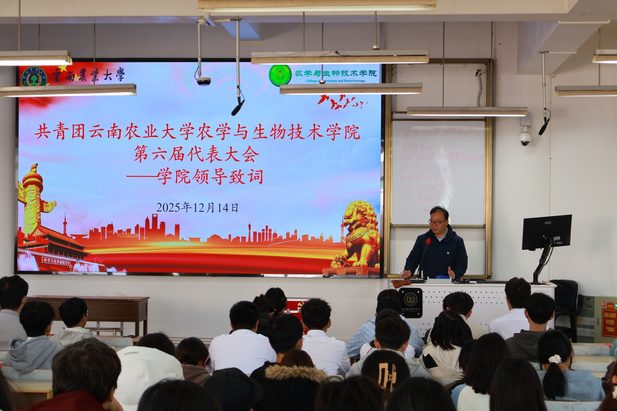 2025年12月13日-14日,农学与生物技术学院第六次团员代表大会胜利召开。学院党委副书记安曈昕出席并讲话。学院团委负责人、各年级团员代表齐聚一堂,共同回顾过去工作,展望未来发展,并选举产生新一届共青团农学与生物技术学院委员会。